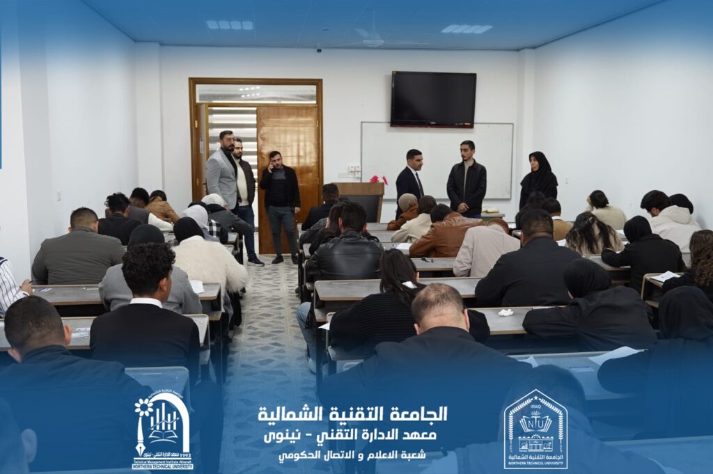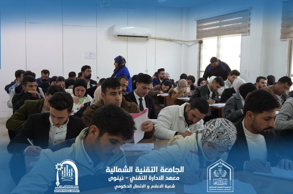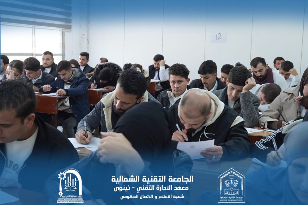 تتواصل الامتحانات النهائية للفصل الدراسي الأول للعام الدراسي 2025–2026 لطلبة المستوى الثاني في معهد الإدارة التقني نينوى، وللدراستين الصباحية والمسائية، يوم الأحد الموافق 4 كانون الثاني 2026، وسط أجواء امتحانية منظمة تسهم في ضمان انسيابية الأداء الامتحاني.